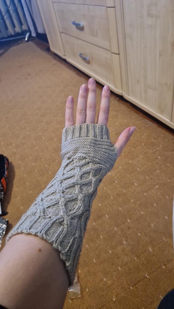 Guantes de punto chulos sin dedos, bonitos, ligeros, con buen tejido. El único inconveniente para mí es que quedan demasiado flojos en la parte superior de la palma, cerca de los nudillos, pero eso depende de cada uno))