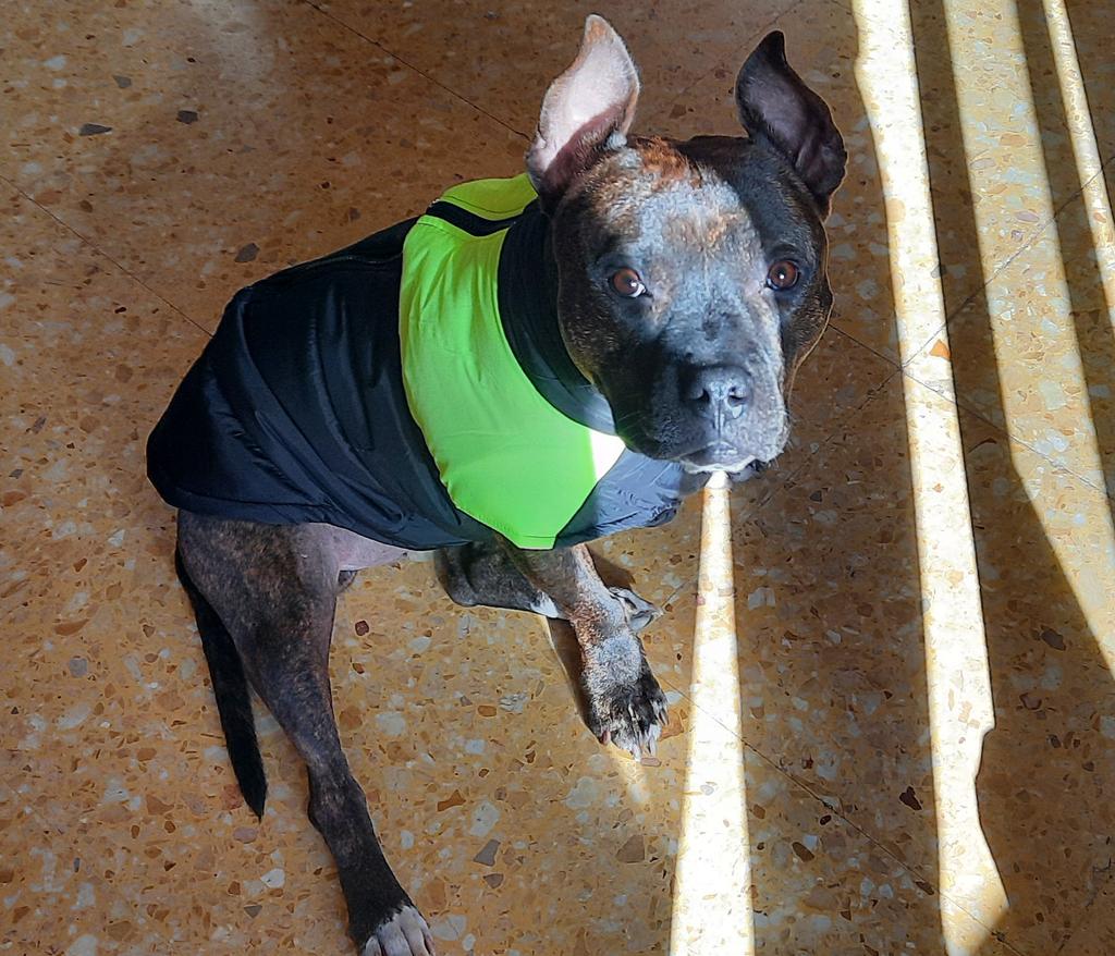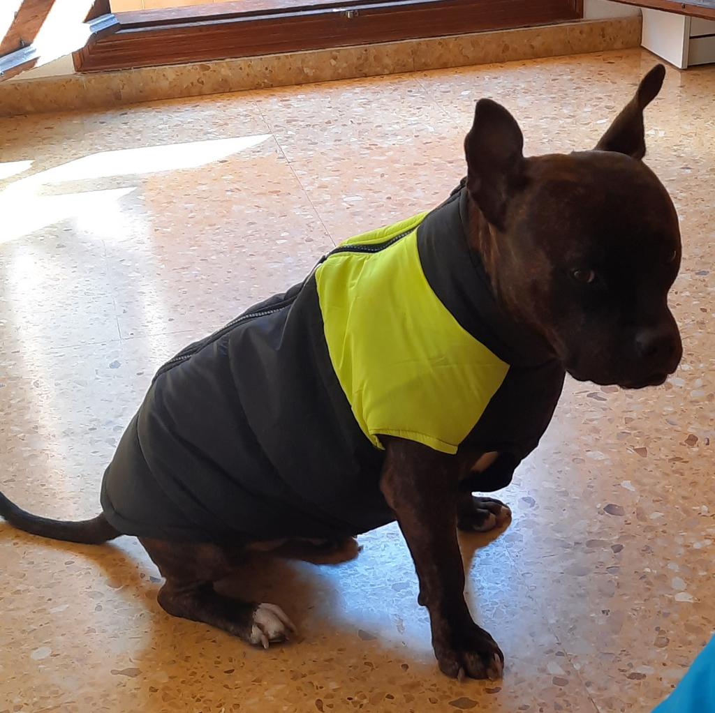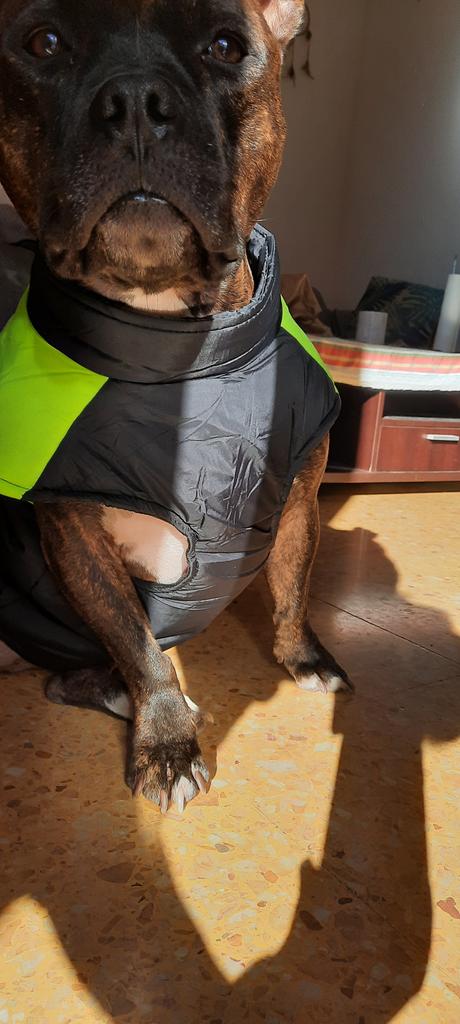 Ha quedado muy guapo, es una 5xl mi perro pesa 27kg, es un American Stanford, tiene todo como en la foto, pero yo le puse el arnés encima porque mi perro es un escapista. 😂 Recomendado