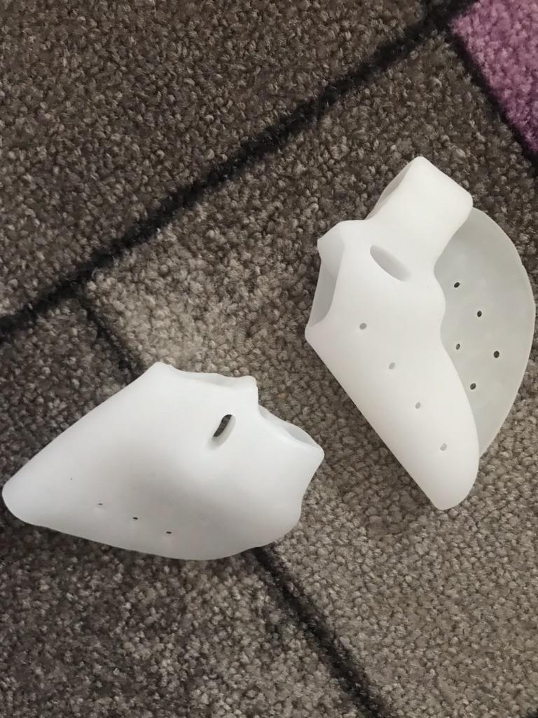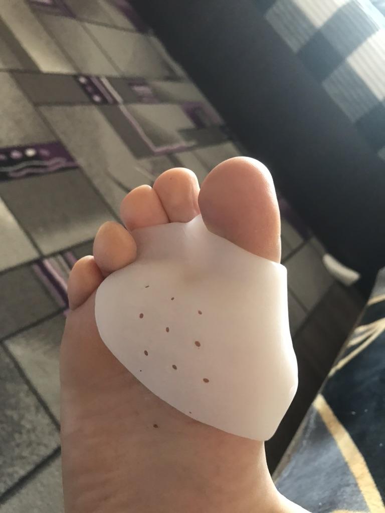El pedido llegó rápidamente. Silicona suave. Se adapta al pie, se puede caminar con zapatos. No interfiere con la marcha.