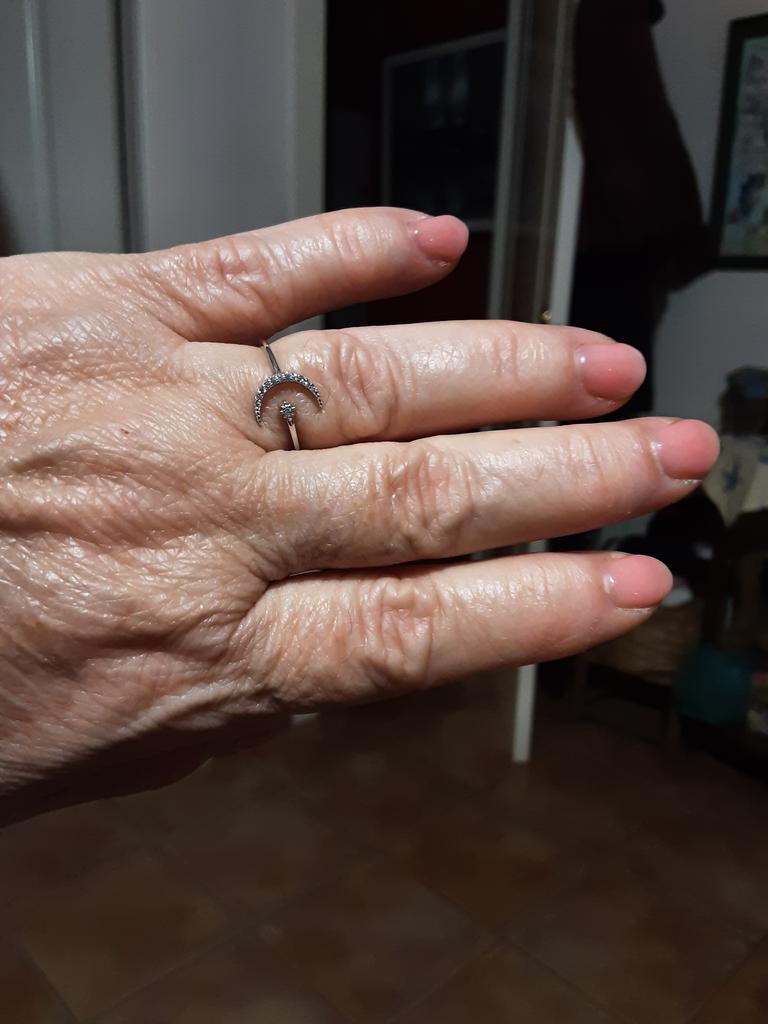WOSTU Anillos de apertura de boda con forma de luna de Plata de Ley 925 auténtica para mujer, anillo ajustable con circonita deslumbrante
