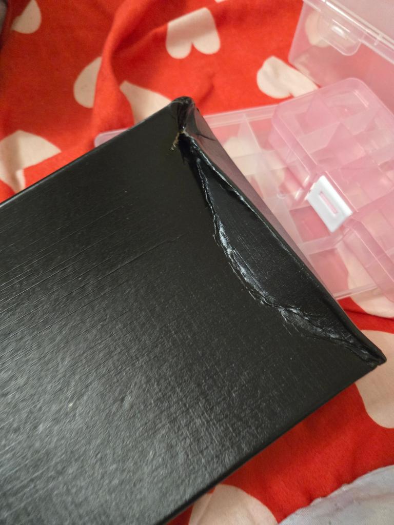 Llegó con la película despegada y abollada en la base y la tapa. Está hecho de cartón fino. puede ser mas