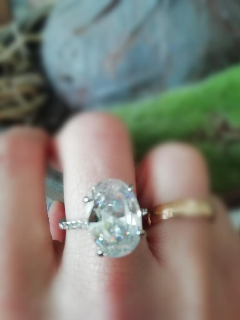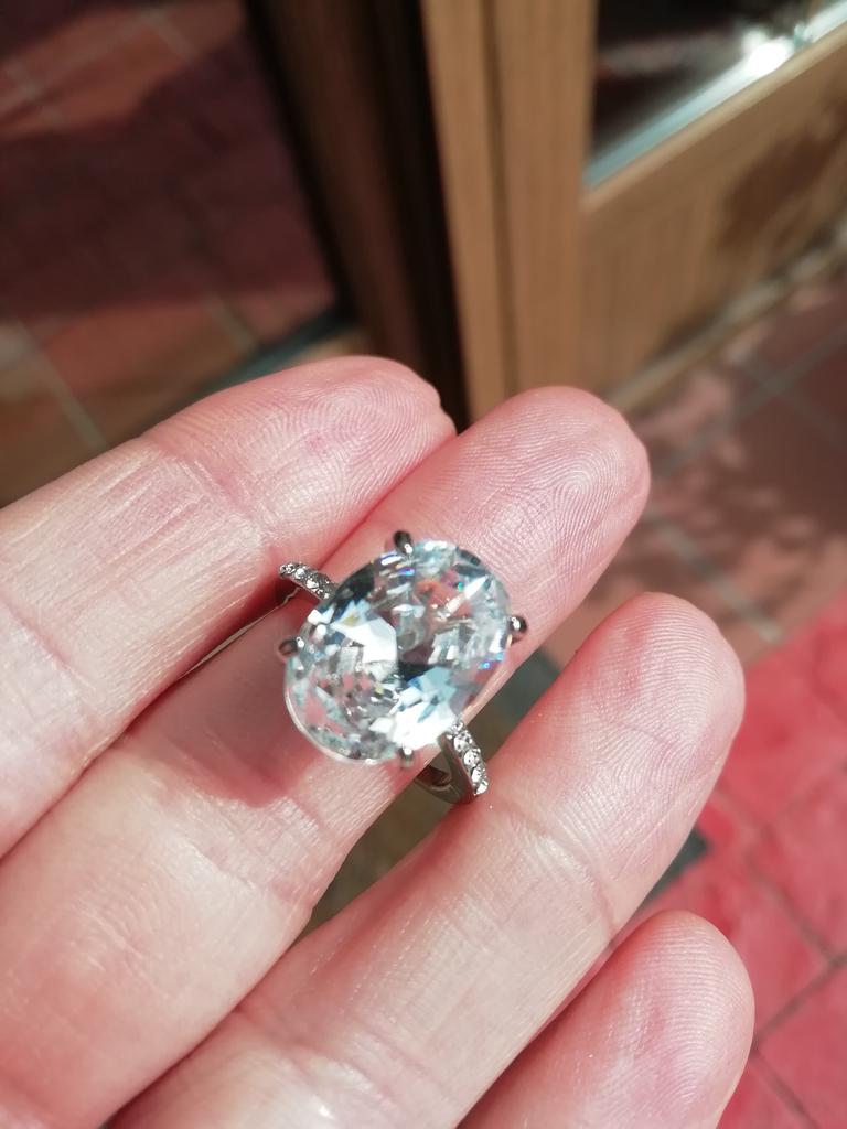 Precioso anillo🥰. Solamente ha tardado diez días en llegar a España. Da mucho el pego, es color plata con una gran piedra o cristal, imitación a brillante. No se lo que durará pero por el precio merece la pena🌺🌸
