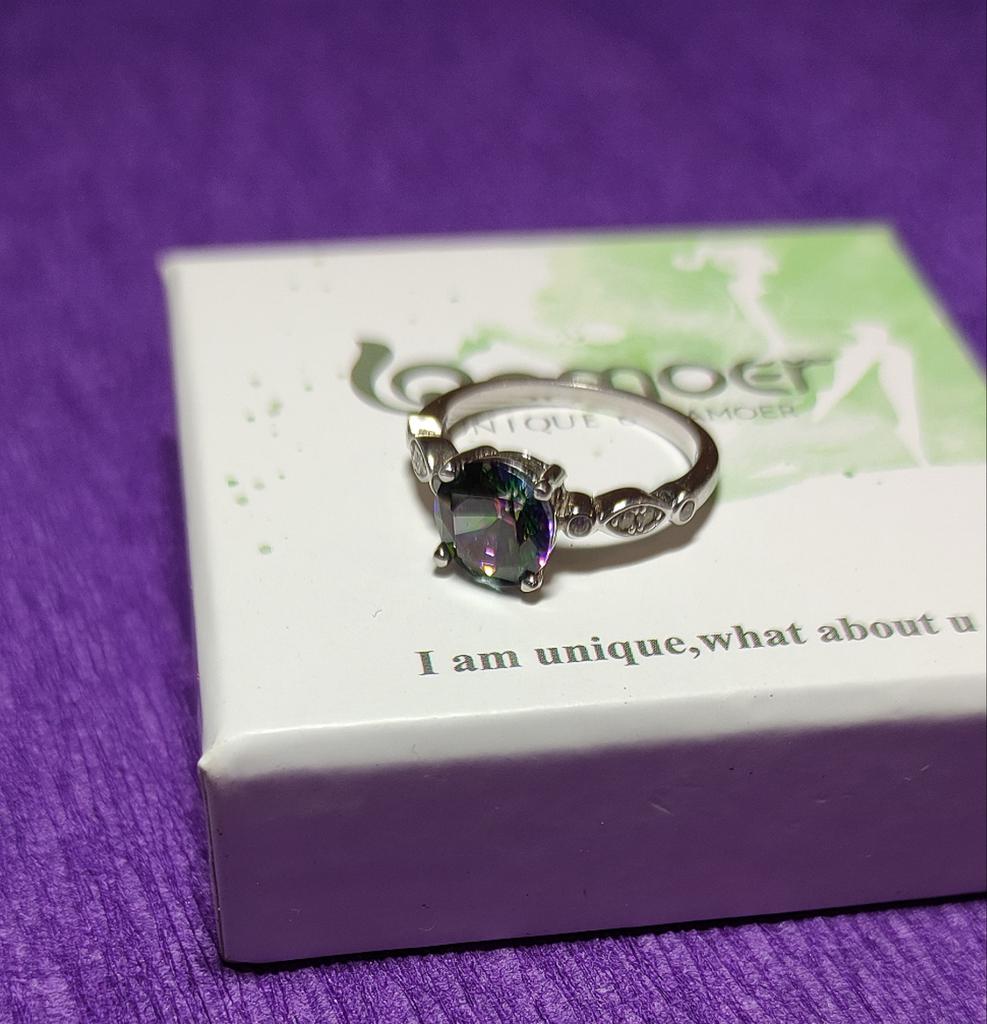 ⭐⭐⭐⭐⭐ El anillo de UMCHO llegó después de 12 días, muy bien embalado, con el servicio de entrega. Este anillo tiene calidad de joyero y proviene de UMCHO. Está bellamente elaborado con auténtica plata de ley 925. La piedra es un circón arcoíris. La mitad superior del anillo está decorada con pequeñas circonitas cultivadas.. Este anillo viene en una caja muy bonita y es el regalo perfecto. 💕 Nunca antes había tenido un circón arcoíris y estoy totalmente hipnotizado por su hermoso brillo y su brillo encantado. 😍 Estoy absolutamente satisfecho y me complacería recomendar este artículo.. Muchas gracias al vendedor por el envío rápido. 🌺