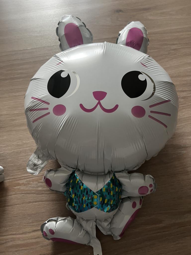 Muy satisfecho con el producto. El conejo es muy tierno y agradable. Lleno de cuidado. Quiero mencionar que todos los globos vinieron sin la pajita para inflar, yo usé una pequeña de plástico del refresco. Entrega rápida en RM.