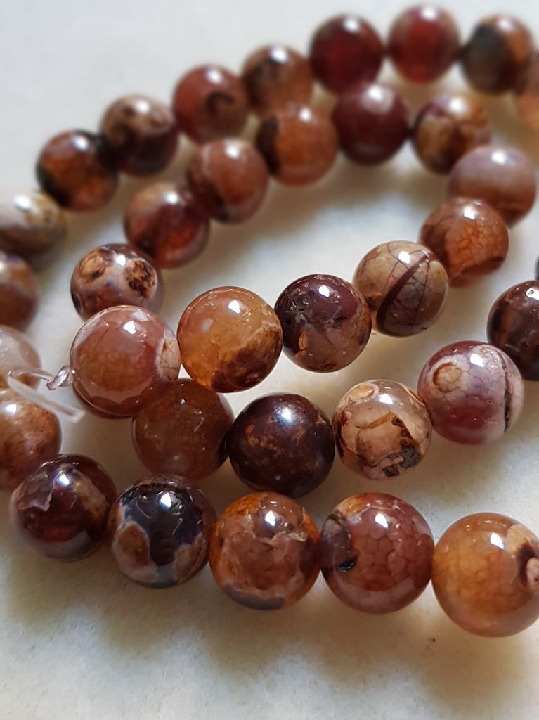 Cuentas de piedra Natural de ágatas de dragón de fuego marrón, cuentas espaciadoras sueltas redondas para fabricación de joyería DIY, 6/8/10mm
