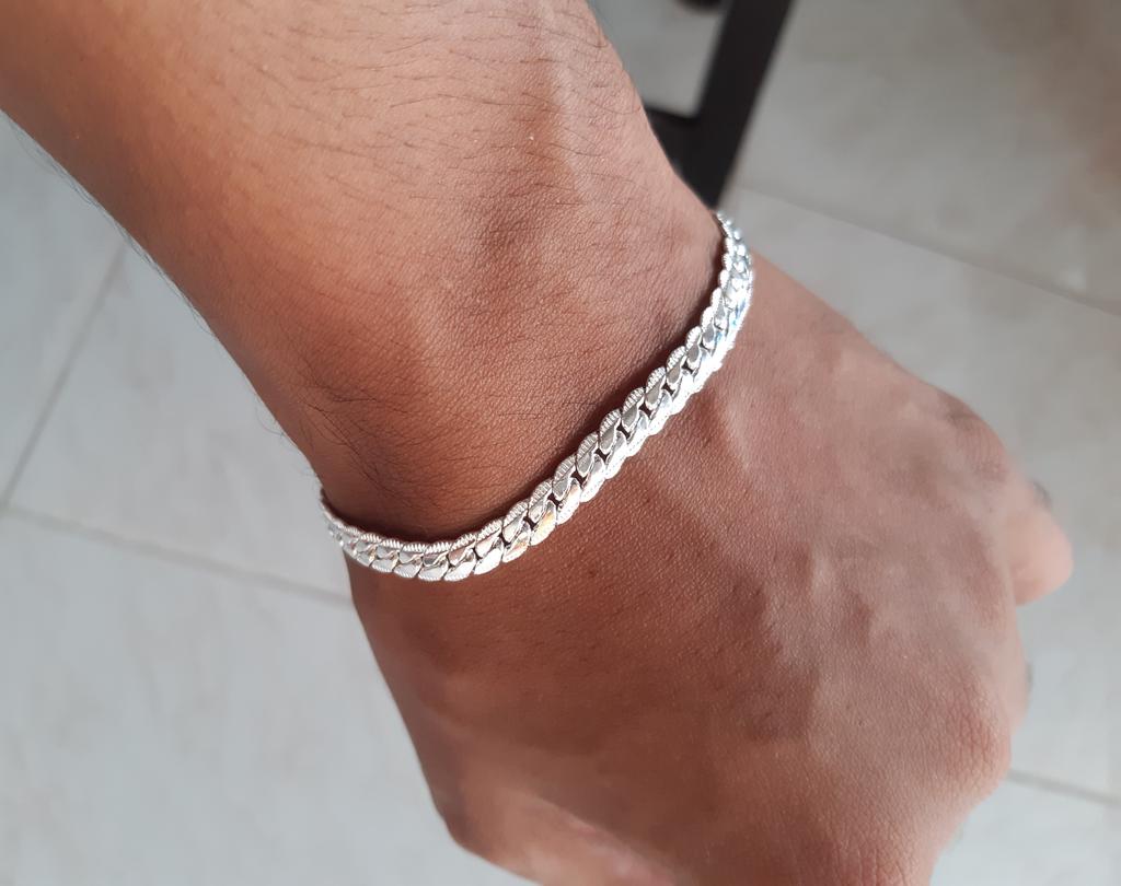 Pulsera Hombres Elegantes Cadena Plana Chapada En Plata Diseño Minimalista Pulsera Regalos De Joyería