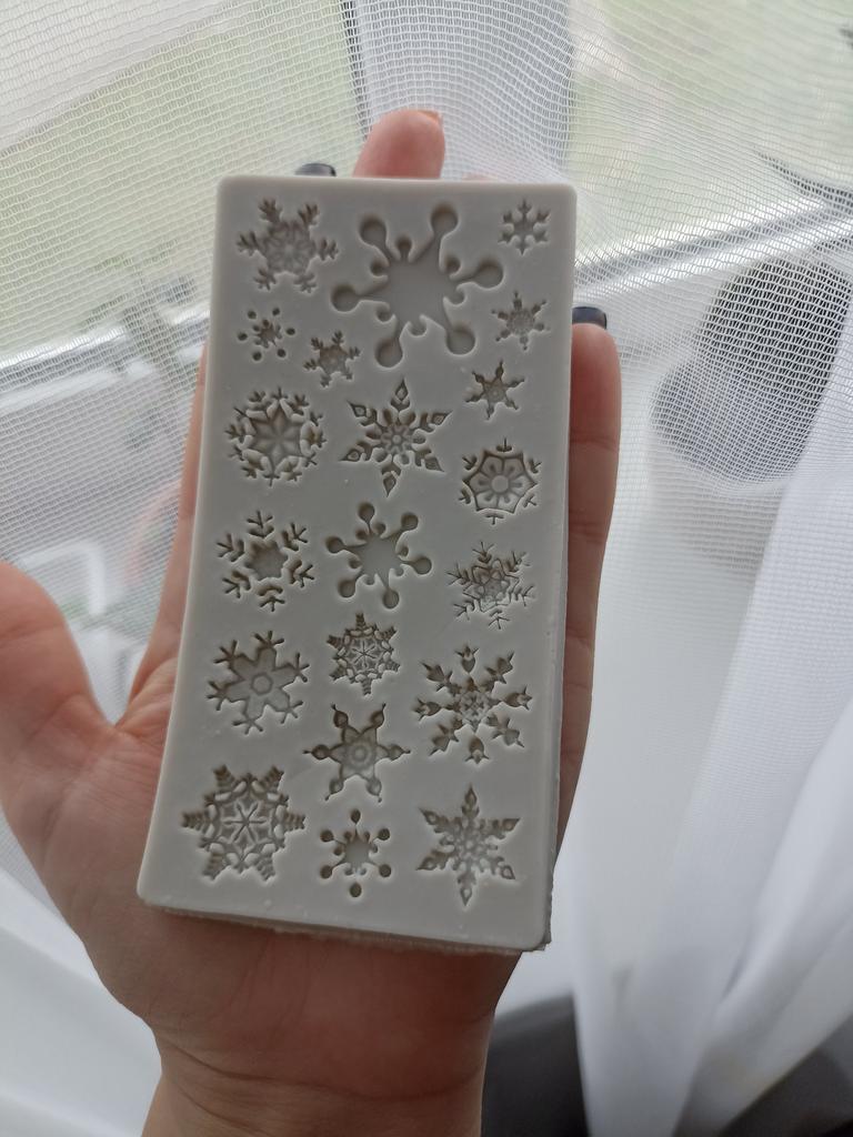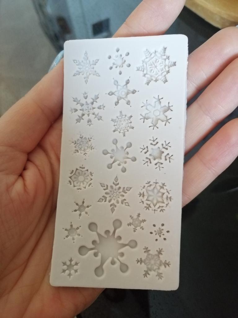 El paquete llegó en dos semanas de ancho de copo de nieve de silicona aproximadamente 10x5 minúsculo muy