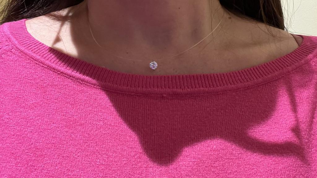 Cadena con collar de plata invisible,colgante rhinestone con línea de pesca transparente