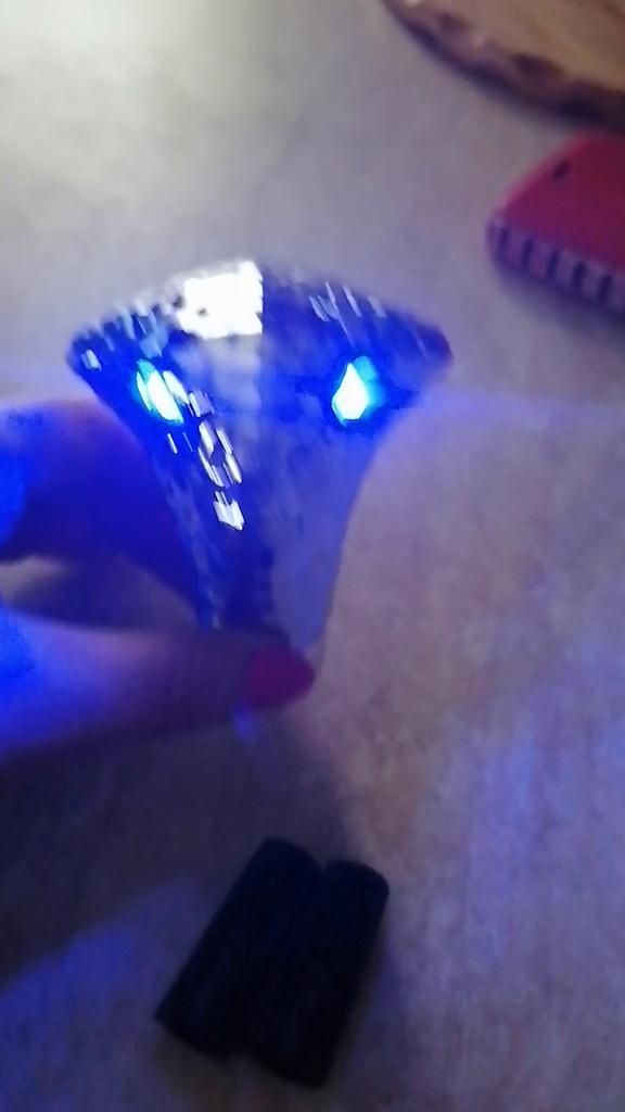 Por este dinero, un excelente producto, los ojos brillan en tres modos: parpadeo rápido, lento y encendido constante