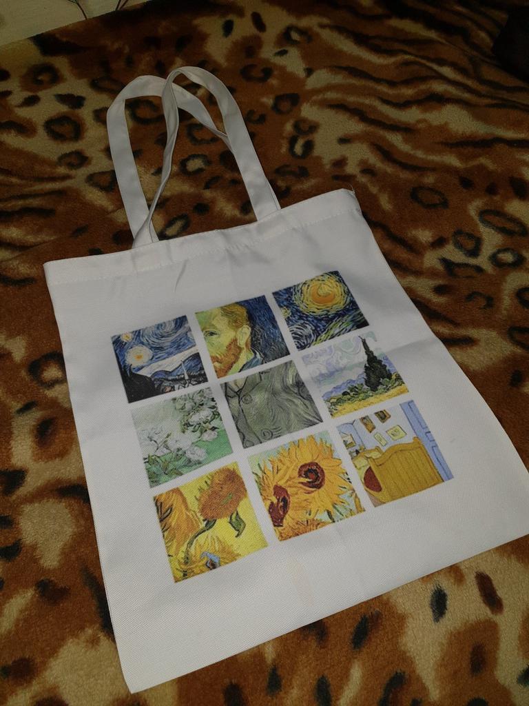 Bolso de hombro de lona con estampado de dibujos animados de Van Gogh, bolso de compras femenino Harajuku Ulzzang