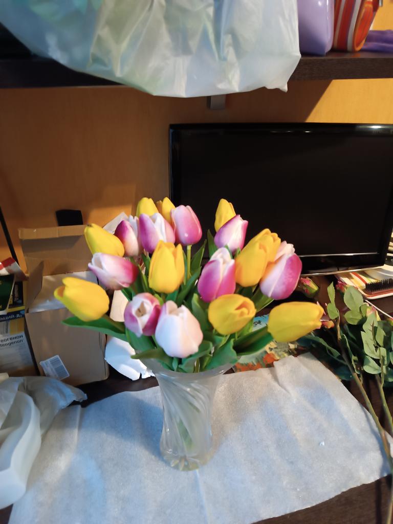 Ramo de Tulipanes artificiales 💐 Se ve muy bien, como si fuera real💥 El tamaño de las flores es pequeño, el color es amarillo 💛 El material es gomaespuma, por lo que será fácil de cuidar (lavar con agua)☝️ Recomiendo el producto 🤗