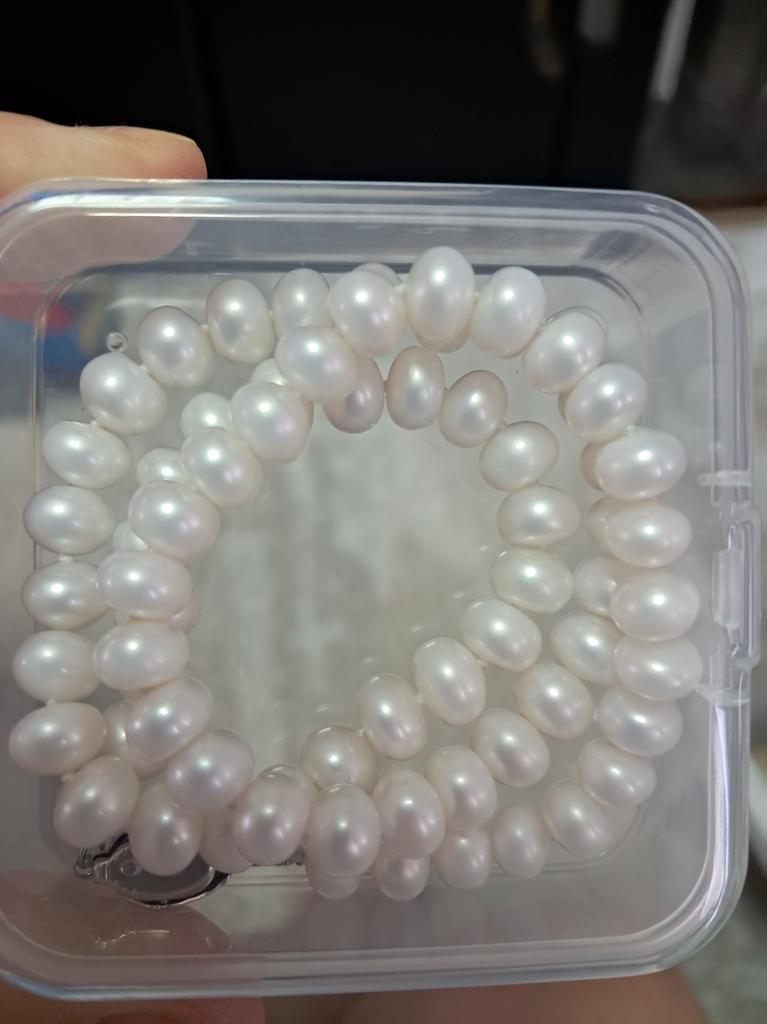 Perfecto. Son perlas naturales, frías, casi uniformes, sin líneas.