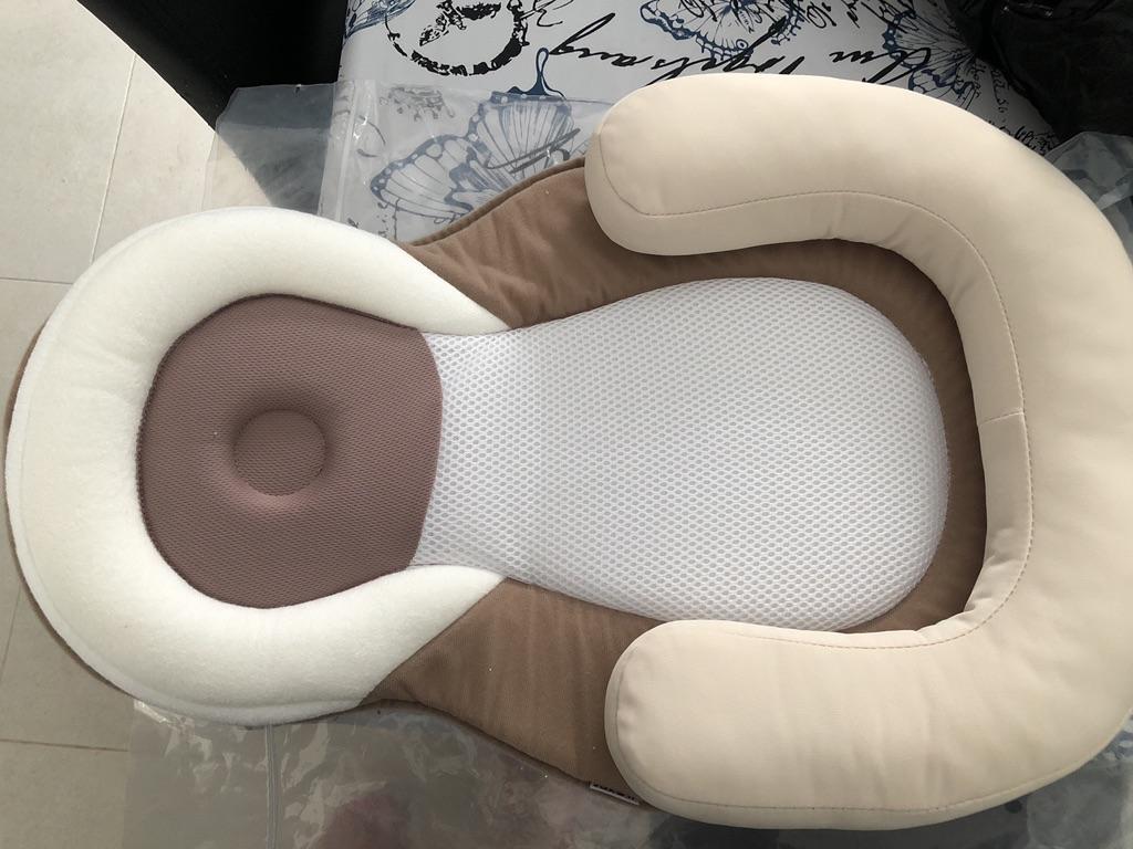 Es tal cual en la foto aunque para mí gusto es algo pequeño. Las almohadillas donde van la cabeza y los piececitos son con velcro y se pueden sacar para lavar.