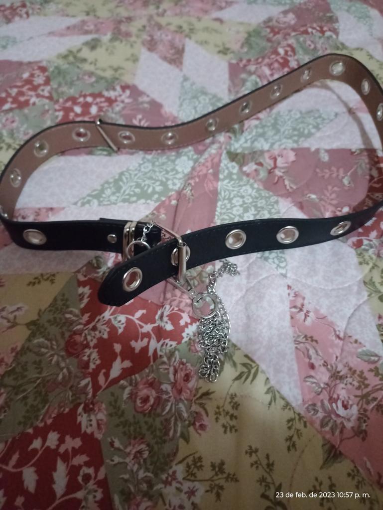 Cinturón de moda con cadena punk para mujer, cinturón ajustable con ojal de doble/una hilera con cadena de ojales