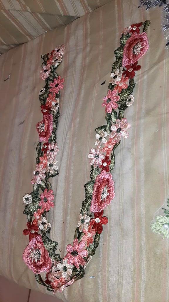 Cinta decorativa de encaje de hojas florales, calcomanía bordada, costura hecha a mano, accesorios de ropa DIY