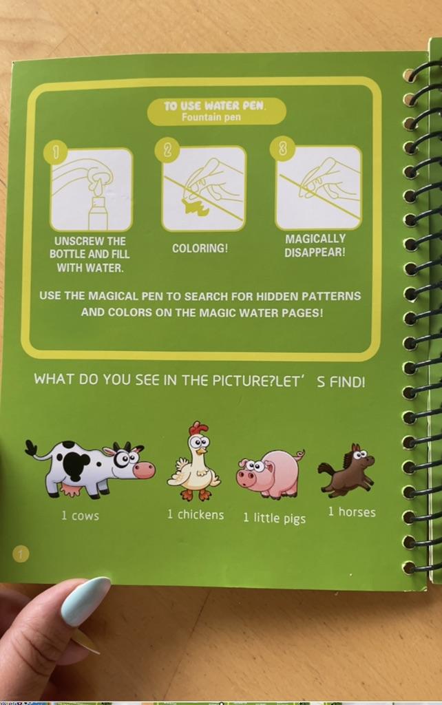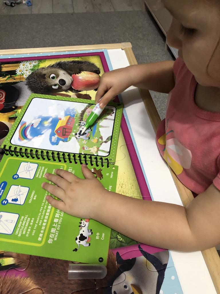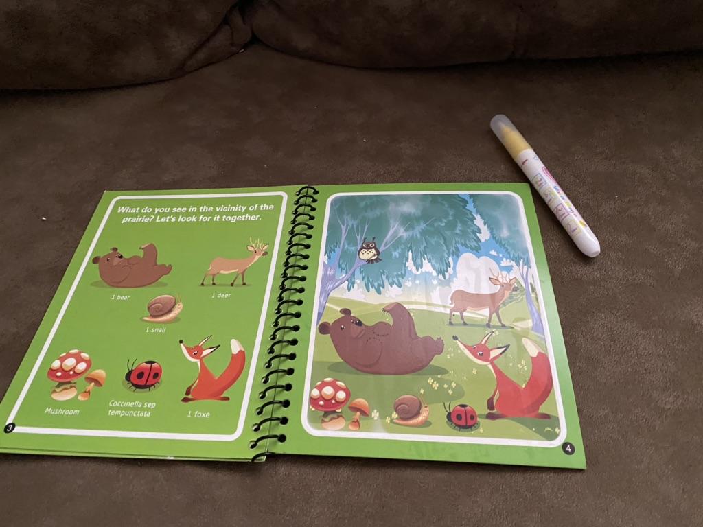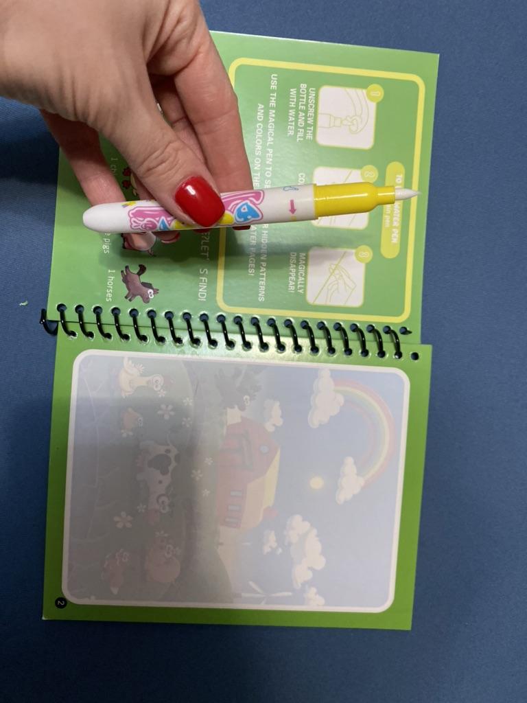 Como tenemos una alfombra de agua y es muy popular aquí, pedimos este libro para colorear con agua para llevar. Es muy fácil de usar y las imágenes son hermosas.
