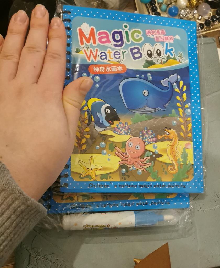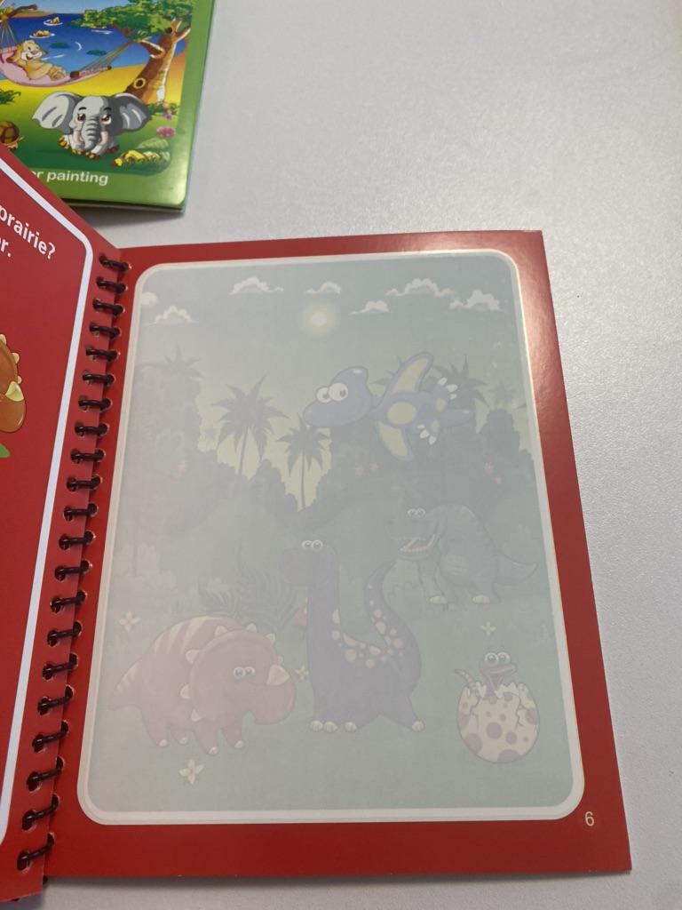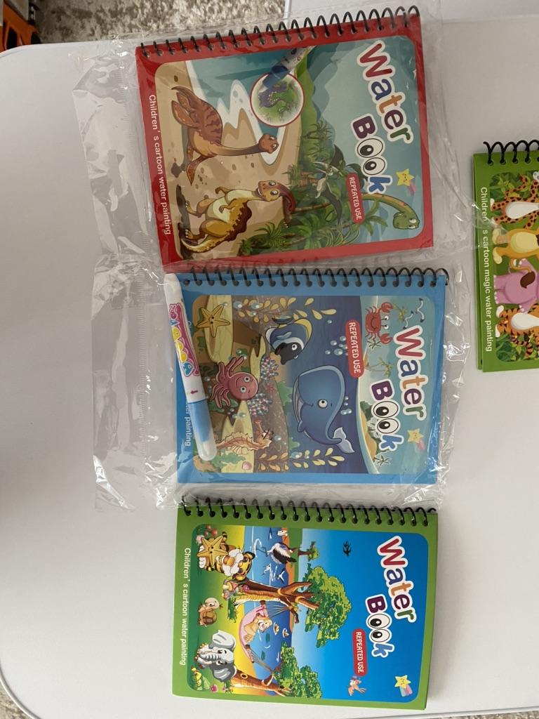 Los libros son bonitos, el dibujo es de colores brillantes cuando le cae agua, y después de un tiempo se seca, por lo que es reutilizable.