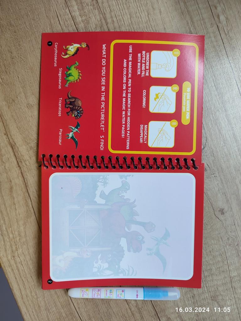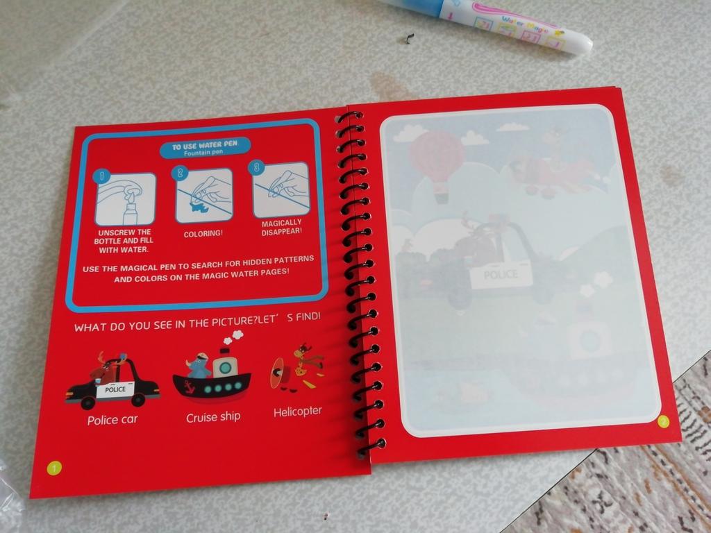 El libro llegó a Chisinau en 2 semanas. Hay 4 imágenes para dibujar. La idea es interesante, pero mi hijo no tiene paciencia para colorear porque el bolígrafo tiene un agarre bastante delgado y hay que colorear mucho tiempo en el mismo lugar para que aparezca un elemento pequeño.