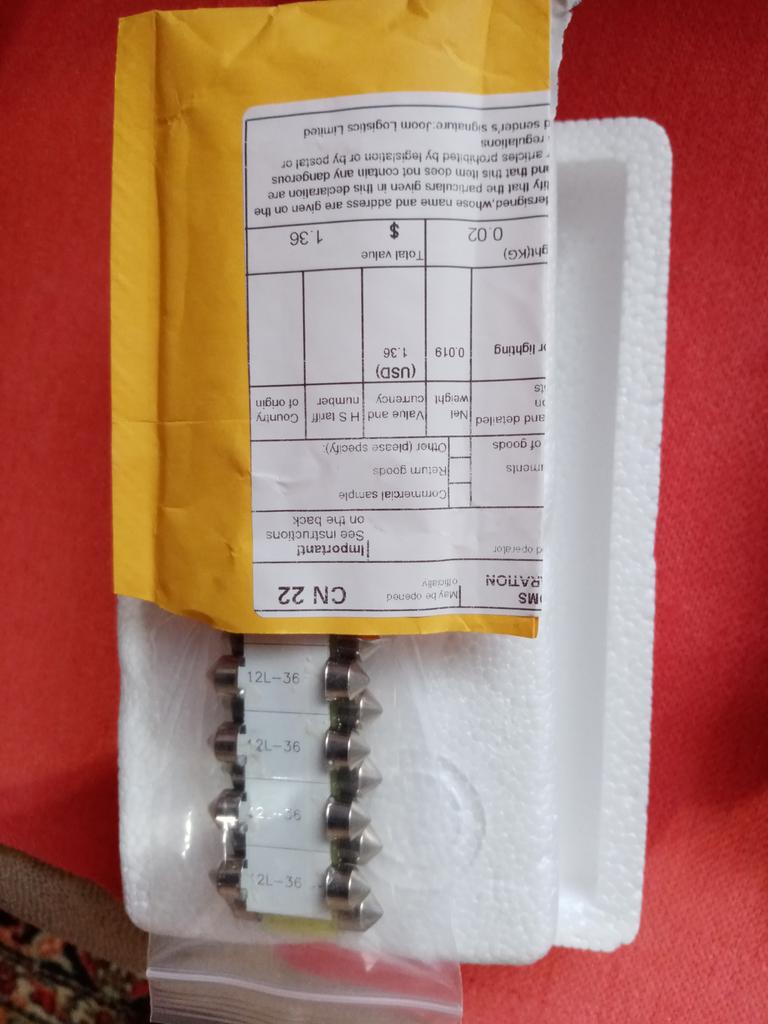 Pedido el 26/12/2020 llegó el 19/1/2021. Las 10 bombillas LED blancas llegaron de forma segura y todas funcionan. Solo puedo recomendar al vendedor.. . Creo que es una pena que no haya exactamente esos en diferentes colores, excepto solo blanco.. . Me gustaría tenerlo en: 2x azul hielo (39 mm) 2x azul (39 mm)