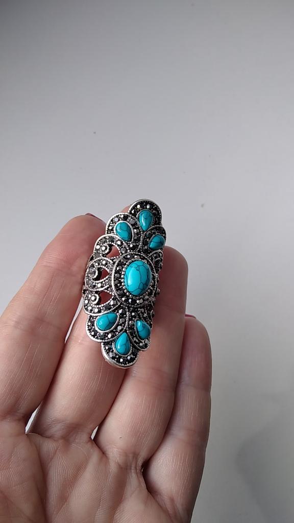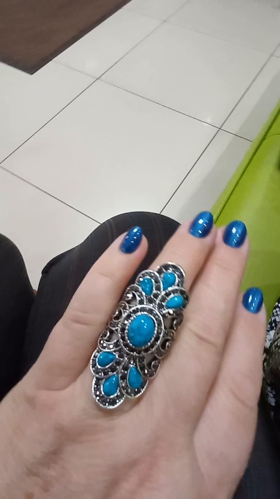 El anillo es grande, hermoso, llama la atención por sí mismo.Hecho con cuidado. Lo recomiendo Gracias a todos