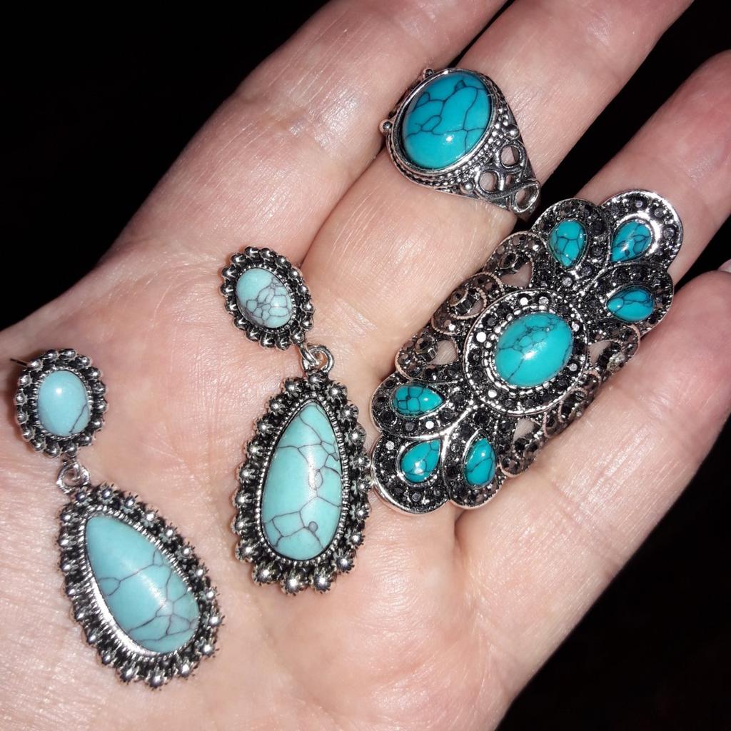 BLUELANS RINGS Anillo de dedo para fiesta, joyería simétrica con incrustaciones huecas de turquesa Vintage