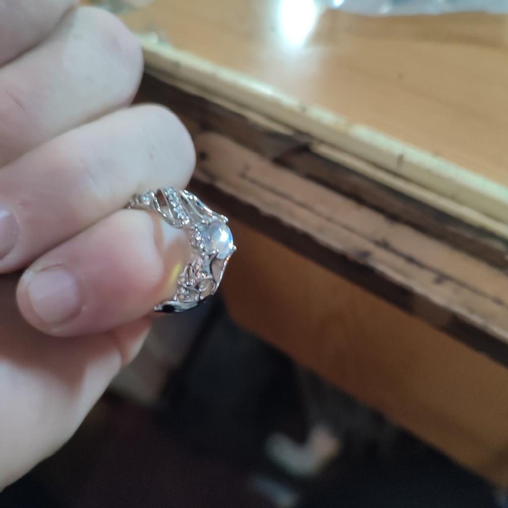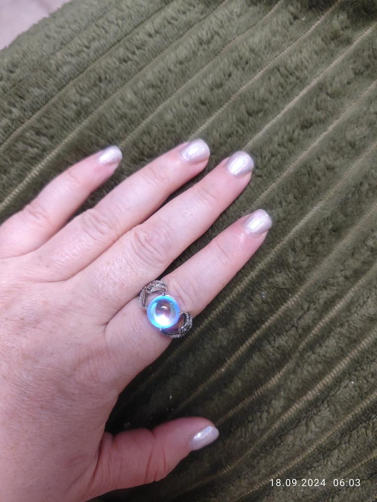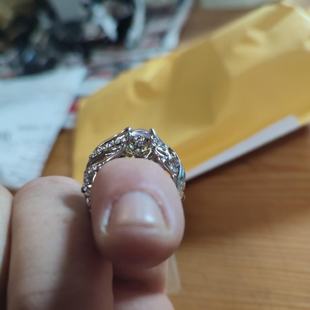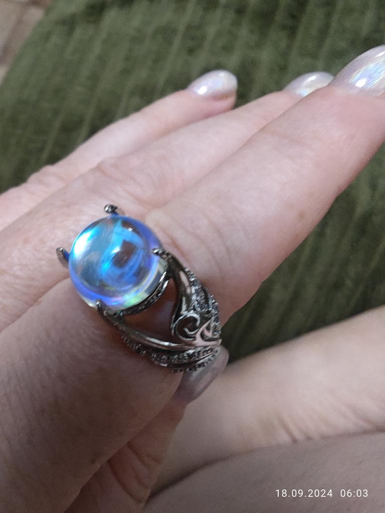 El anillo es hermoso. La piedra parece cambiar de color. Pero en el dedo es un poco incómodo, es enorme. Pero muy agradable.