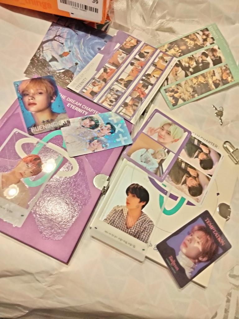 Os cuento mi experiencia con el álbum “The Dream Chapter: Eternity” de @txt_bighit 😊 💙El álbum incluye: ✨CD ✨Álbum de fotos ✨1 photocard ✨1 photocard especial ✨1 postal ✨1 pack de pegatinas ✨libro de letras ✨Póster ✨Photocard exclusiva incluída por KPOP Merch. 💙 No os miento si os digo que es uno de mis conceptos de álbum favoritos de todos los que tengo en general, osea, menuda fantasía. Entre los tonos morados y la galaxia… no puede ser más mágico y pegar más con mis gustos😻 Además que las canciones de este álbum son oro✨ 💙 Y bueno, lo voy a nombrar como mi álbum de la suerte porque me ha salido mi bias en 3 PCs de 3, afortunada de por vida de tener la PC de Beomgyu en la camita 😻 💙Viene directamente desde Corea y ha tardado muy poquito, siempre me va genial con esta tienda. 💙Todo genial ✨🌌