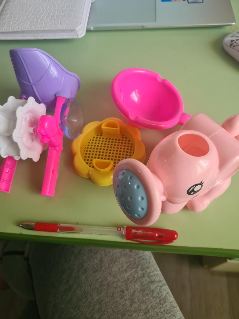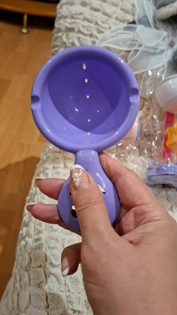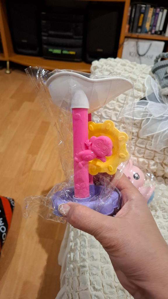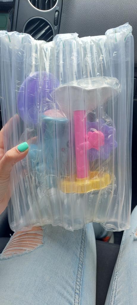 El juguete llegó, pero por alguna razón predomina el color rosa. Nos habría gustado más azul o verde. Tenemos un niño. Pero al bebé le da igual. Gracias por los juguetes. En la foto predomina el color azul, en la vida real es rosa.