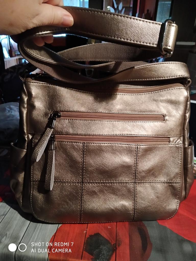 🥰😍😘PRECIOSA¡¡¡¡¡¡ llego muy rápido 👏👏👏 mejor que la foto😘🥰🥰....color muy bonito, súper amplia y muy suave. No estoy segura que sea piel genuina, pero aún así se ve muy resistente. Recomiendo Gracias JOOM...AHORA compraré la otra GRIS🤝🤝🤝