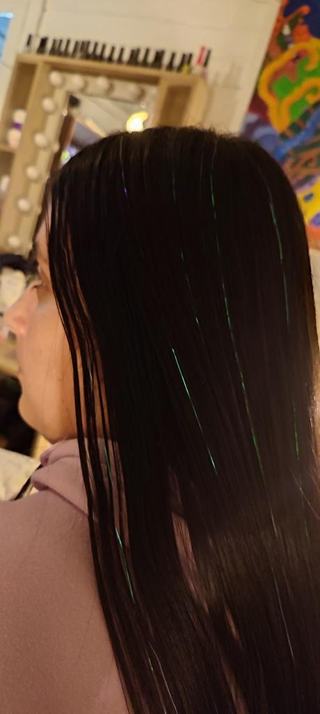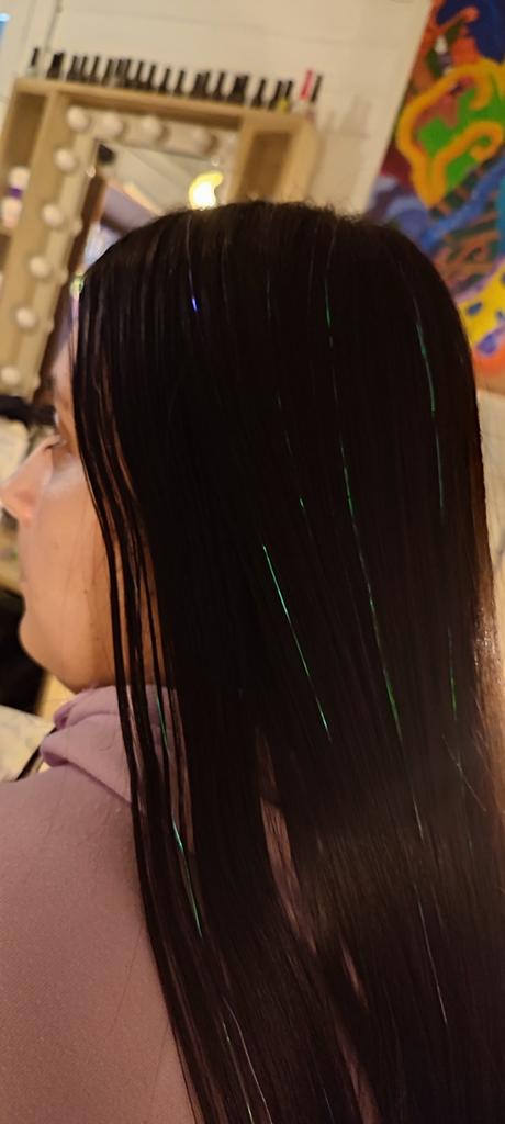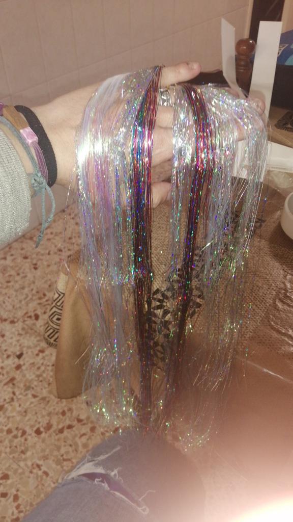 120 hebras/bolsa brillo brillante oropel Arco Iris extensiones de cabello de seda deslumbra a las mujeres Hippie para tocado trenzado colorido largo 39"