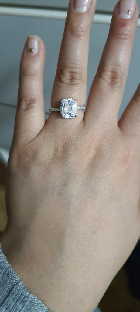 Umcho Anillo de circonita grande cuadrado multicolor de plata S925