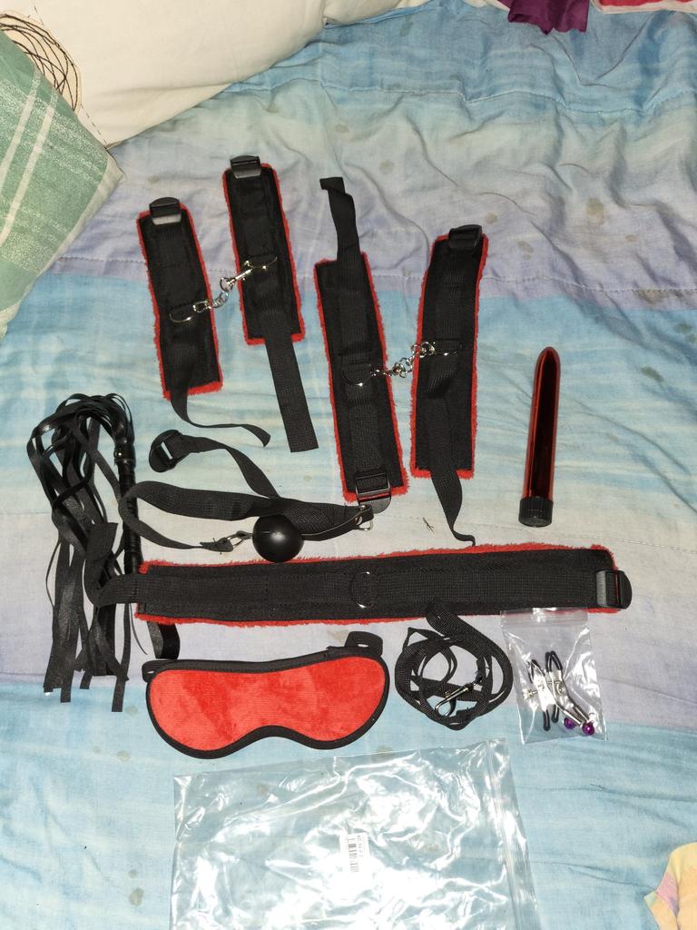 Puntos Sex Toys Set 8Pcs Adult Bondage Handcuffs Footcuffs Whip Blindfold Massager SM