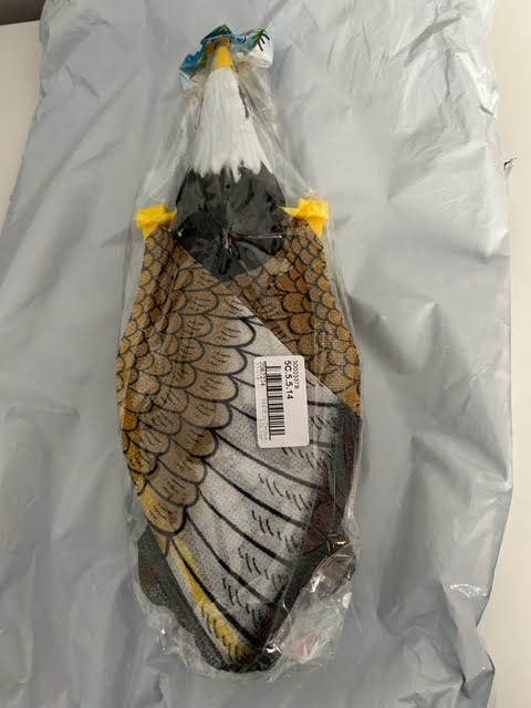 El producto llegó dañado: la sujeción del hilo de pescar en el lomo del águila estaba rota y faltaba uno de los dedos de una de las patas.