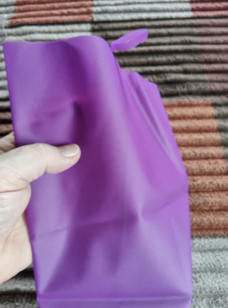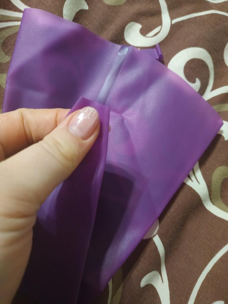 La bolsita es super, la calidad es excelente, sin olor, la costura está pegada (o soldada) de tal manera que no se rasga. Suave, cómoda, muy genial. Entrega a Kiev dos semanas. Definitivamente recomiendo.