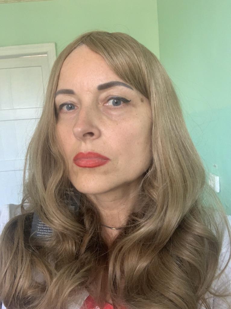 Peluca muy bonita, nada de qué quejarse por el precio, más de un color gris/rubio que gris/plata pero tiene un efecto pequeño. Cabello suave y sedoso. Realmente grandioso