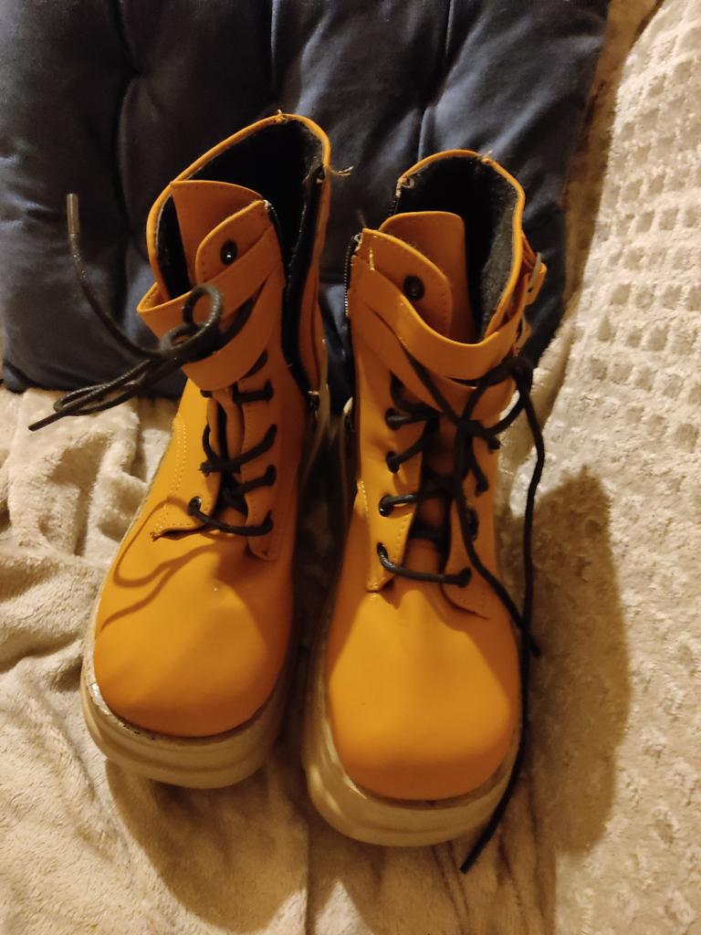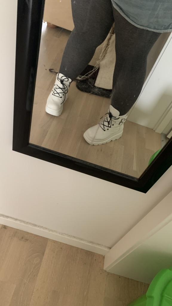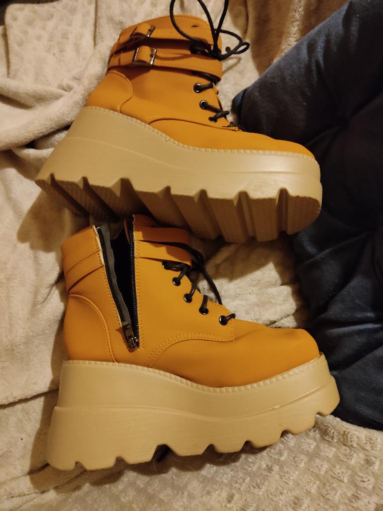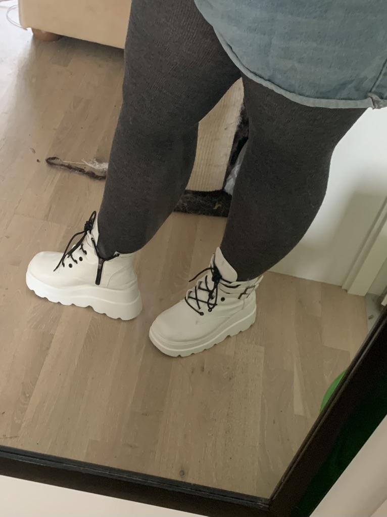 ¡Zapatos de plataforma estilo años 90 super bonitos! ¡Son súper cómodos de usar y calentitos! Así que definitivamente serán un éxito este otoño. Están ligeramente forrados en el interior para que puedas mantener los pies calientes. A pesar de la suela gruesa, son súper livianos y fáciles de usar. Mi único inconveniente es que mis pantorrillas/tobillos son demasiado gruesos para poder cerrarlos por completo. Pero es uno mismo. no es culpa del vendedor, por eso tampoco quita una estrella. 😊 Considerándolo todo, ¡una compra súper increíble, hasta ahora! 😁😁