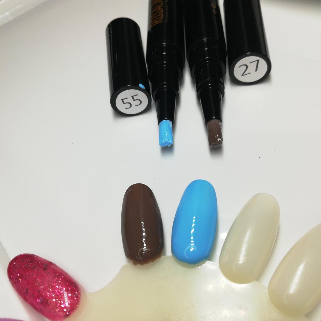 El paquete está completo. El lápiz tampoco está dañado.. El color corresponde al pedido. Lo probaré en mis uñas y agregaré un comentario.