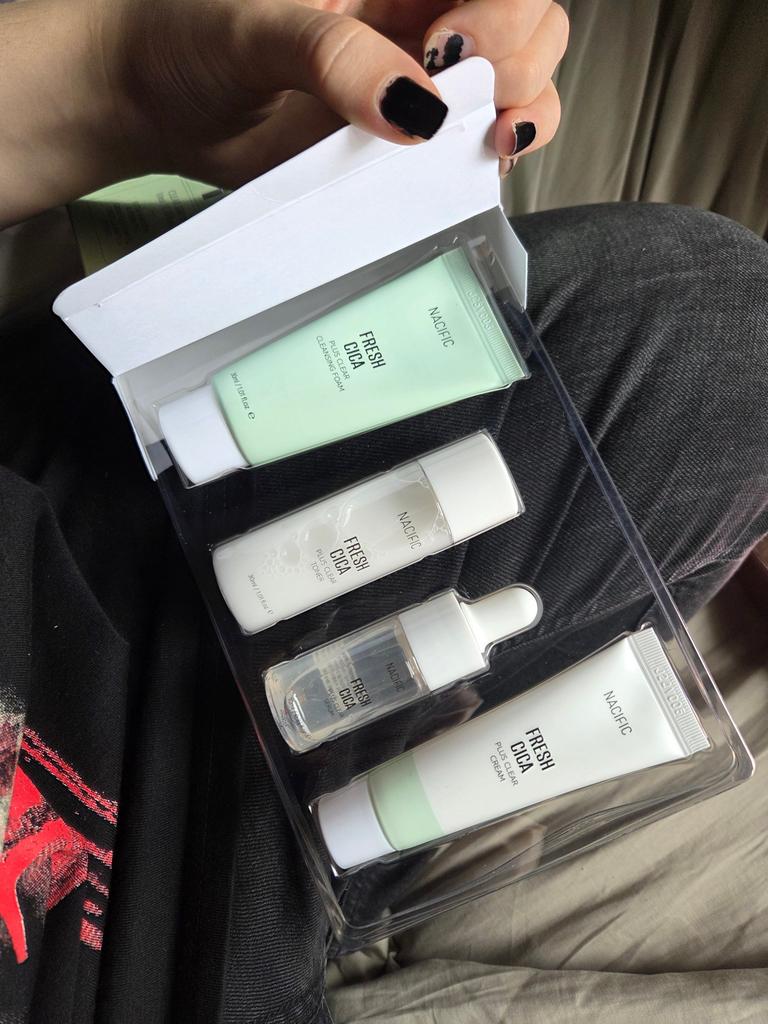 La marca Nacific es una marca que descubrí en Joom y siempre me ha dejado súper satisfecha. Este set es maravilloso, perfecto sobre todo para no renunciar al cuidado de la piel cuando viajas pero también para probar productos con los que no estás familiarizado. El conjunto es para pieles problemáticas, especialmente con acné.. Dada mi edad he superado el problema de los granitos pero sigo teniendo la piel muy grasa y este tipo de productos me ayudan mucho a mantener el exceso de sebo bajo control.. Todos los productos tienen una magnífica consistencia cremosa y una fragancia muy ligera.. Estoy completamente satisfecho y recomiendo la compra.