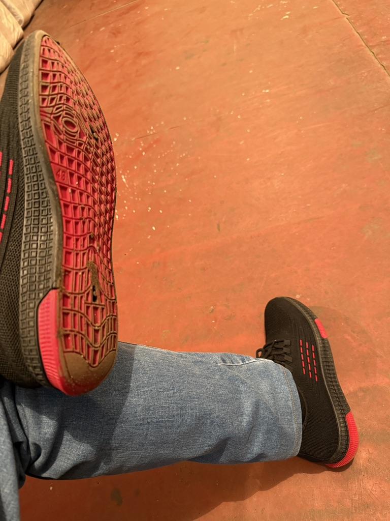 El material de la zapatilla es suave, la suela es de goma, son pesadas. Mi talla es 42, pedí 43, me quedaron justas.