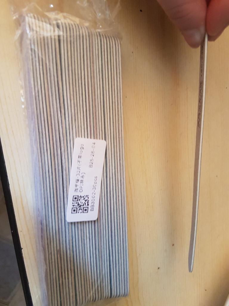 Limas de uñas sobre base de madera, finas, 180 por 240, liman bien, gracias, lo recomiendo.