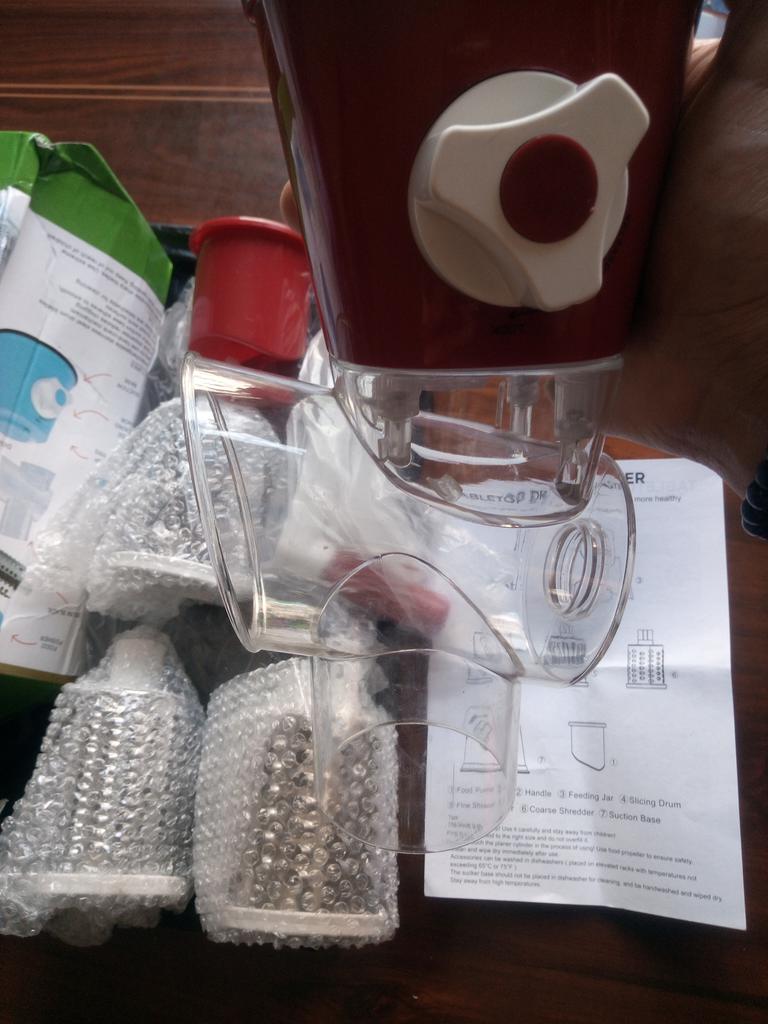 El dispositivo es bueno para cortar zanahorias, cebollas y papas, pero aún no lo he probado. Recibí el dispositivo, pero es bueno, no está roto.