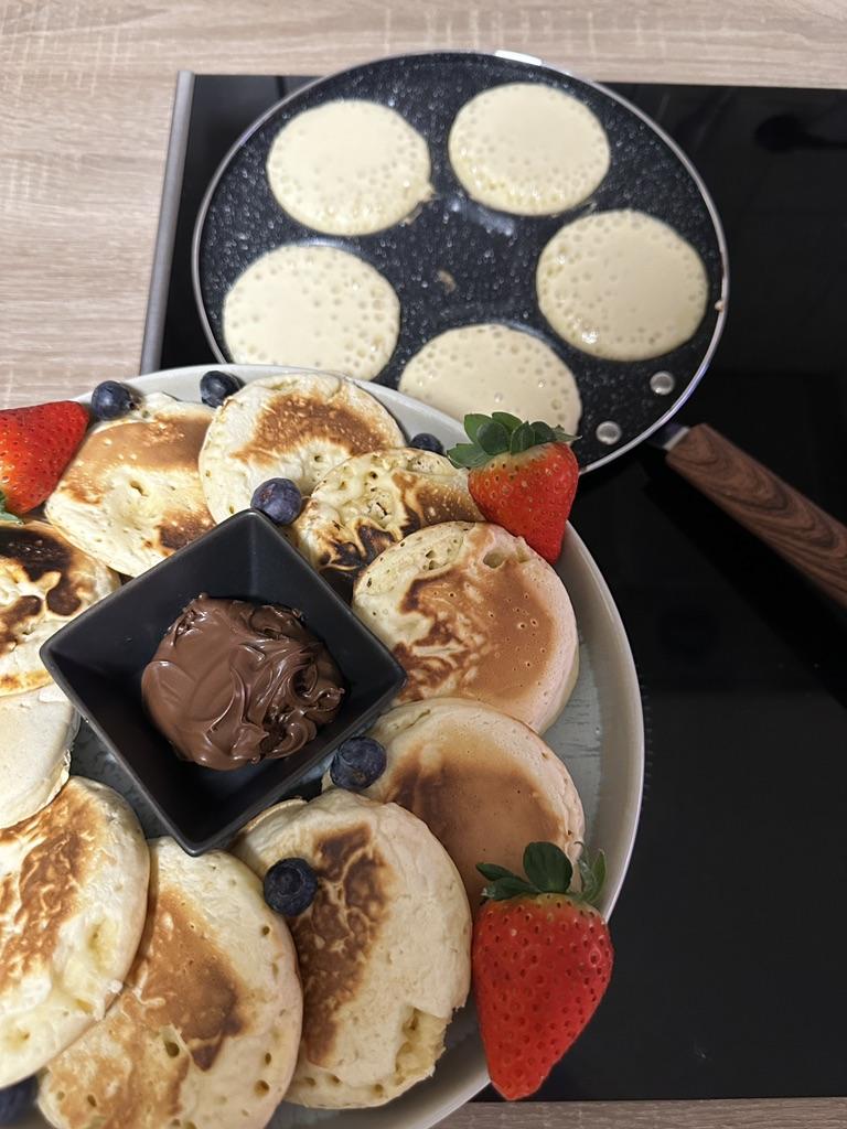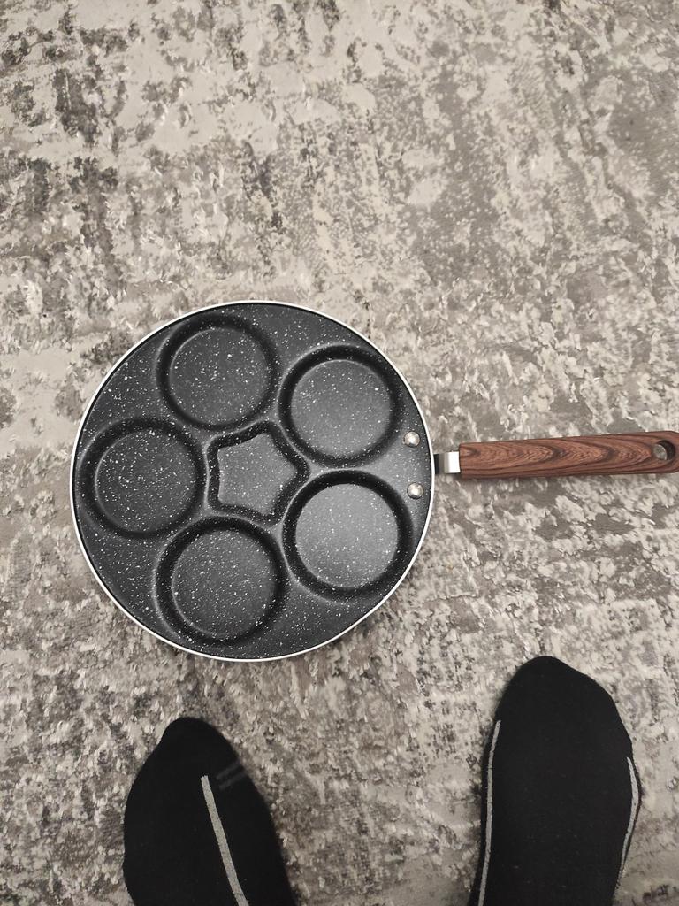 La sartén es excelente. Conveniente para hacer huevos revueltos y panqueques.