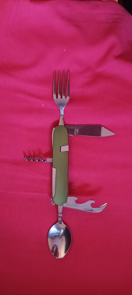 Genial! 👌 Precioso multiusos para llevar a la playa, campo o de picnic, muy útil por venir plegado y usar el mínimo espacio posible y después pode convertirse en unos cubiertos en condiciones. Os dejo varias fotos, cerrado y abierto y en comparativa con mi mano para que veáis el tamaño real. Tardo poco en llegar y venía bien empaquetado. Lo recomiendo, comprare otro para tener dos.