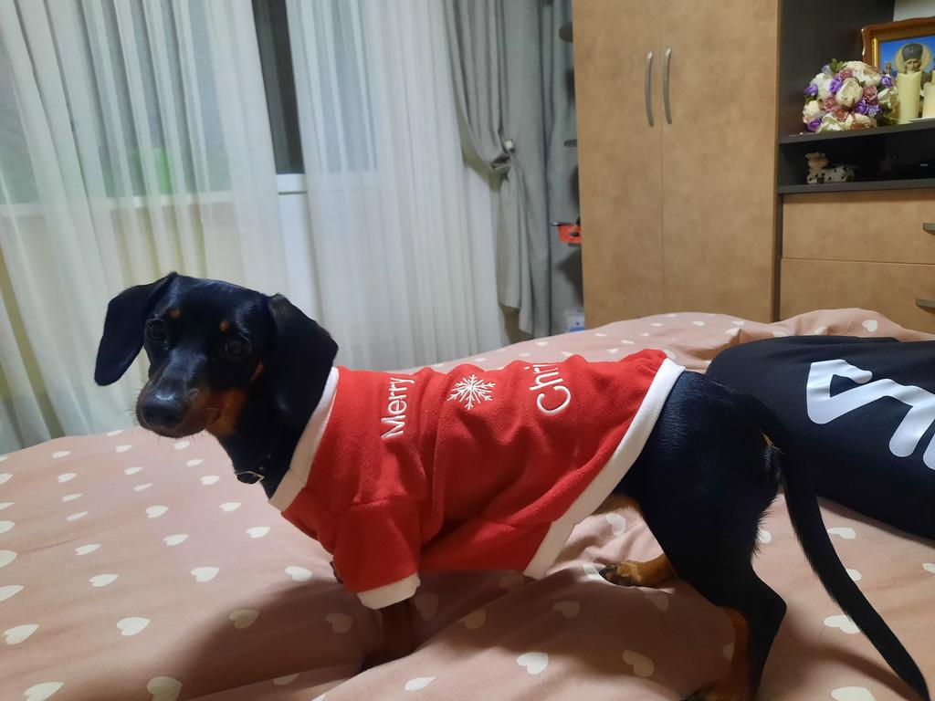 Recibido hoy . Es tan pequeño que mi pequeño York se ha reducido de tamaño. Ya tomé esta talla S Gracias joom y vendedores . ------! 😁 Amo a Papá Noel 🎅 🎅
