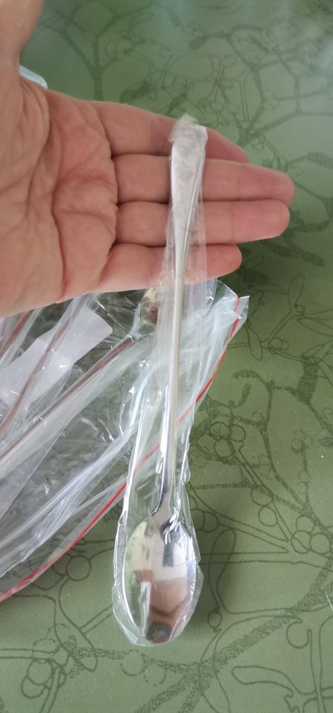 Estoy completamente satisfecho con las cucharas, son fuertes, largas y agradables al tacto. Todos tenían un salafán aparte para no quedarse dormidos. La longitud de la cuchara es de 20 cm.