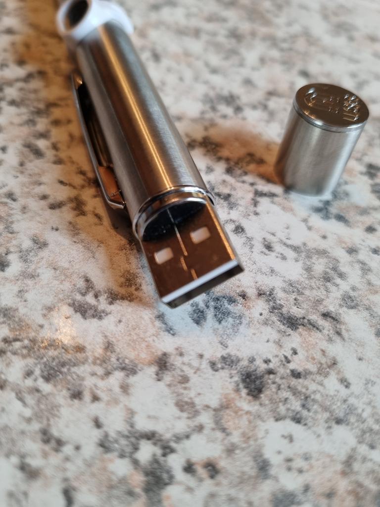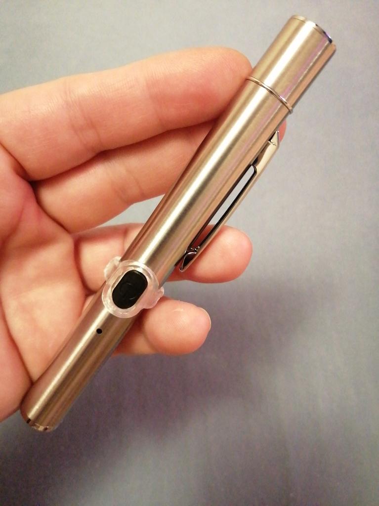 El bolígrafo funciona y se carga desde una toma de corriente mediante un conector. No sé hasta qué punto se nota la verdad, todos están sanos gracias a Dios)