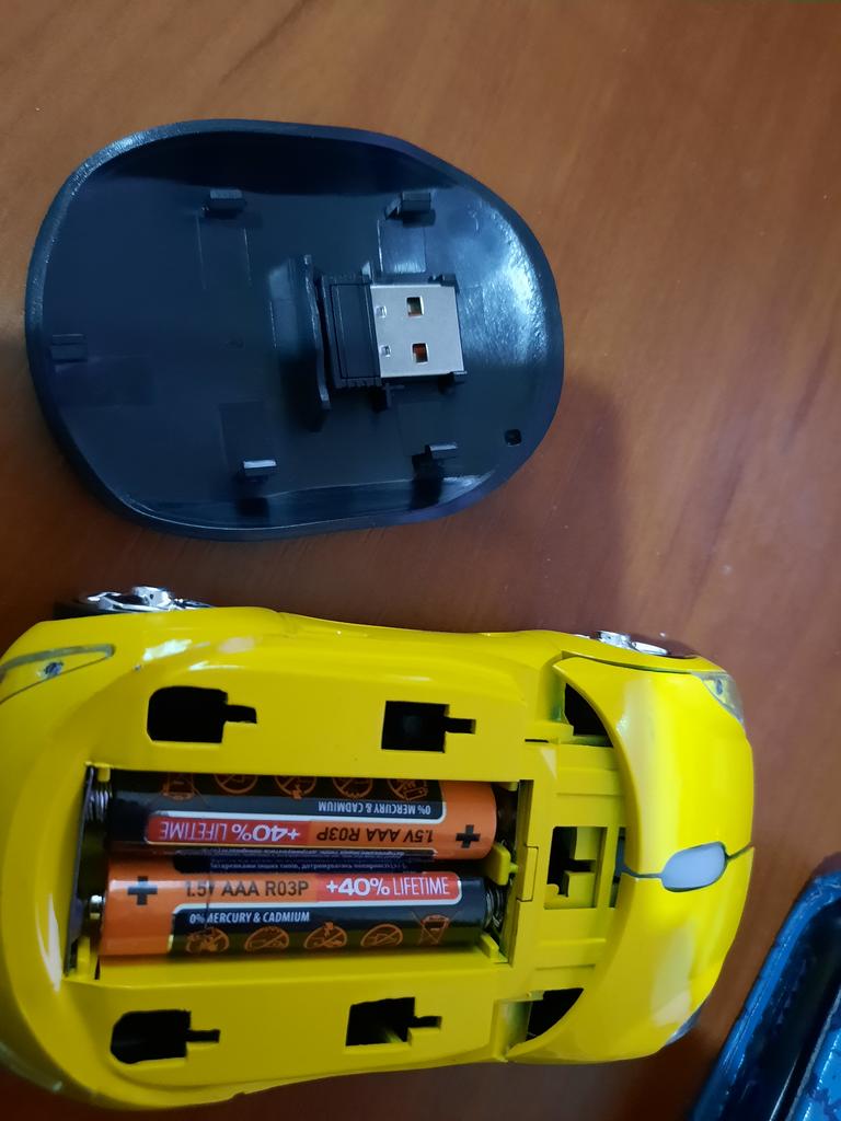 Bonito ratón, el niño está muy satisfecho. Condujo durante 22 días, intacto, funciona. Se retira la tapa desde arriba y se insertan dos pilas de meñique. Hice una revisión rápida del video. Allí puedes ver dónde y cómo insertar las baterías, no pude encontrarlo de inmediato))) ¡Yo recomiendo!