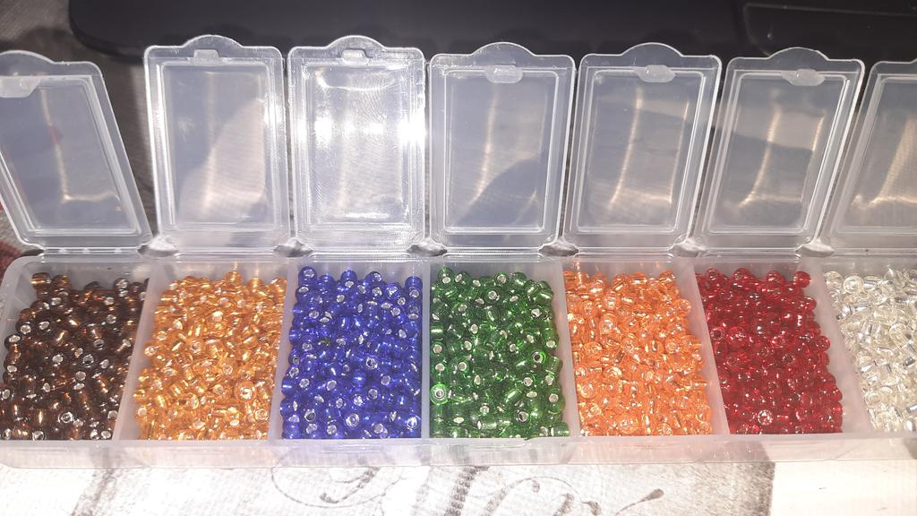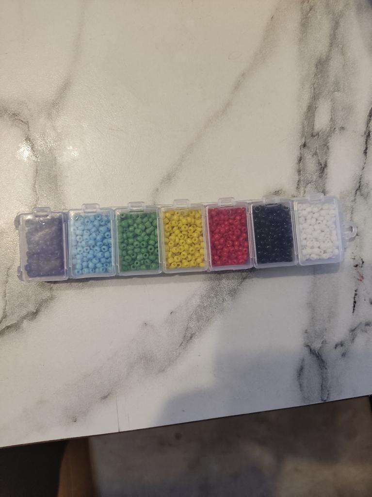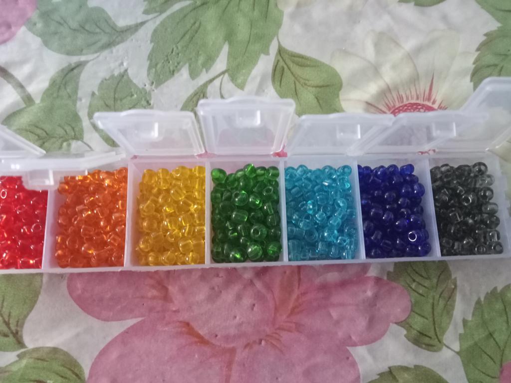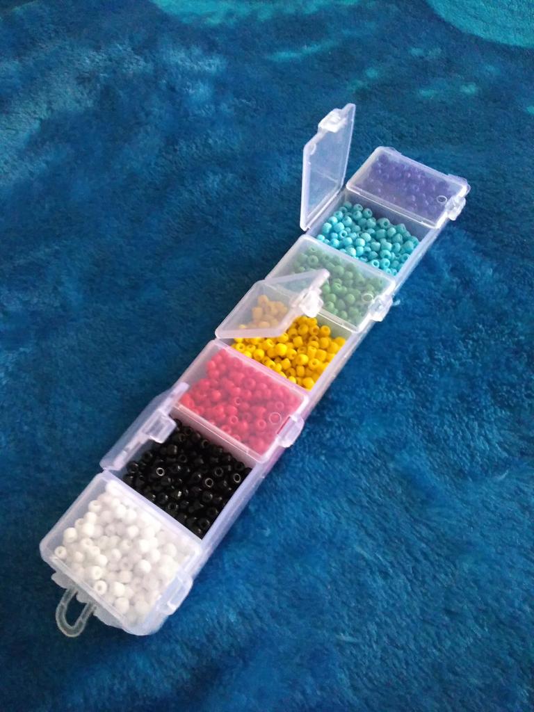 Estupendo estuche de mostacillas de varios colores qué valen tanto para hacer pulseras tobilleras o gargantillas tanto con técnica de macramé o con telar