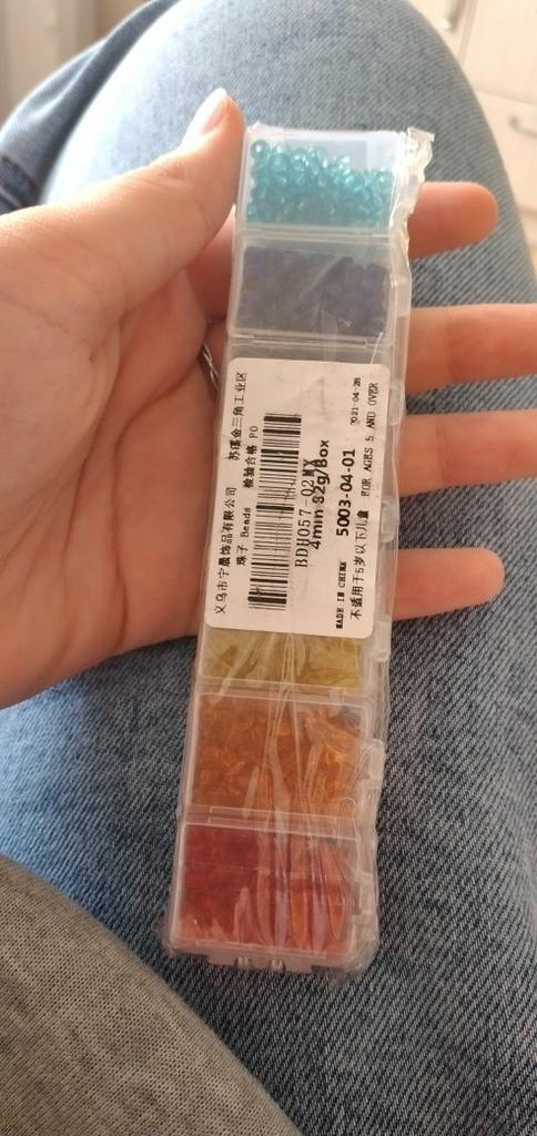 Este set de cuentas de cristales de colores es genial! Vino super bien protegido, con su embalaje correctamente hermético. Se trata de cuentas de colores de tamaño mediano, y vienen 7 colores del Arco iris: rojo, naranja, amarillo, verde, azul clarito, azul marino y gris oscuro💚🧡💙❤️💜. Son cuentas de color semitransparentes, es decir que reflejan la luz, no son totalmente opacas. Lo que crea un reflejo super bonito y brillante🌈. Yo las he utilizado para crear varios diseños de pulseras como pueden ver en las fotografías. Se trata de perlitas que se pueden combinar entre sí, pero también quedan muy bien con otro tipo de cuentas. En mi caso he decidido hacer una pulsera elástica en tonos anaranjados, y también he añadido una flor para darle un toque floral🥰🧡. La otra pulsera ha sido la combinación de perlas de todos los colores, creando un brazalete de arcoiris super chulo. Este pack es muy bonito y lo recomiendo un montón, además son ese tipo de cuenta que no se va a ir el color, ni con agua ni con el uso, y eso es muy importante 🙌🏼!!