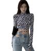Camiseta corta de manga larga sin espalda ajustada sexy con estampado de leopardo/cebra para mujer